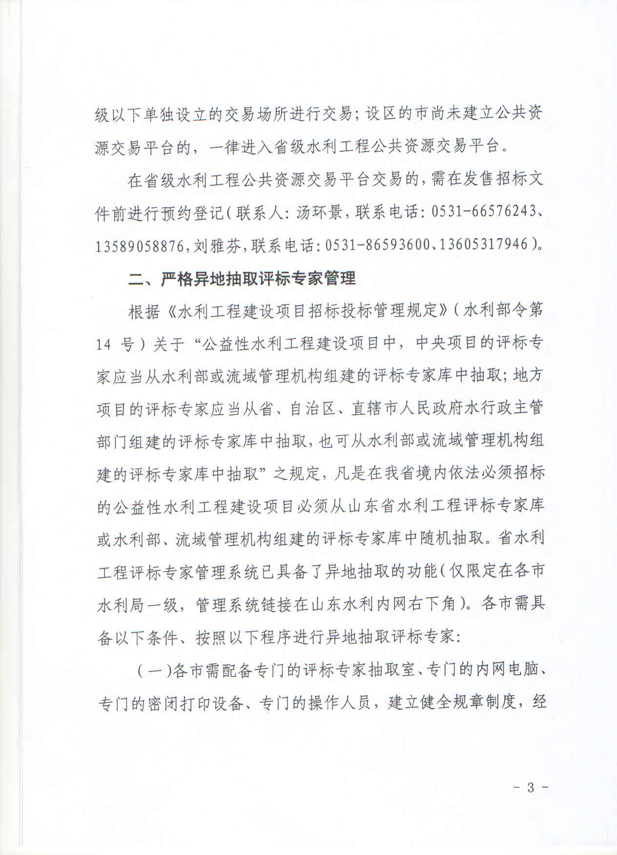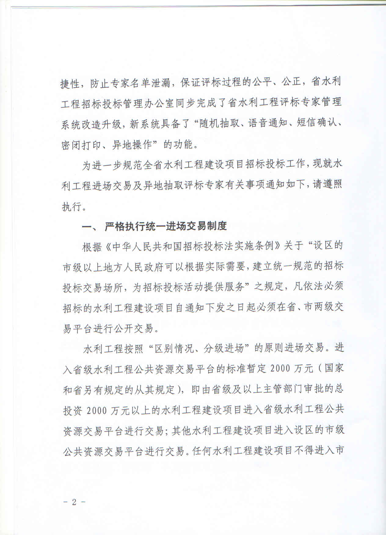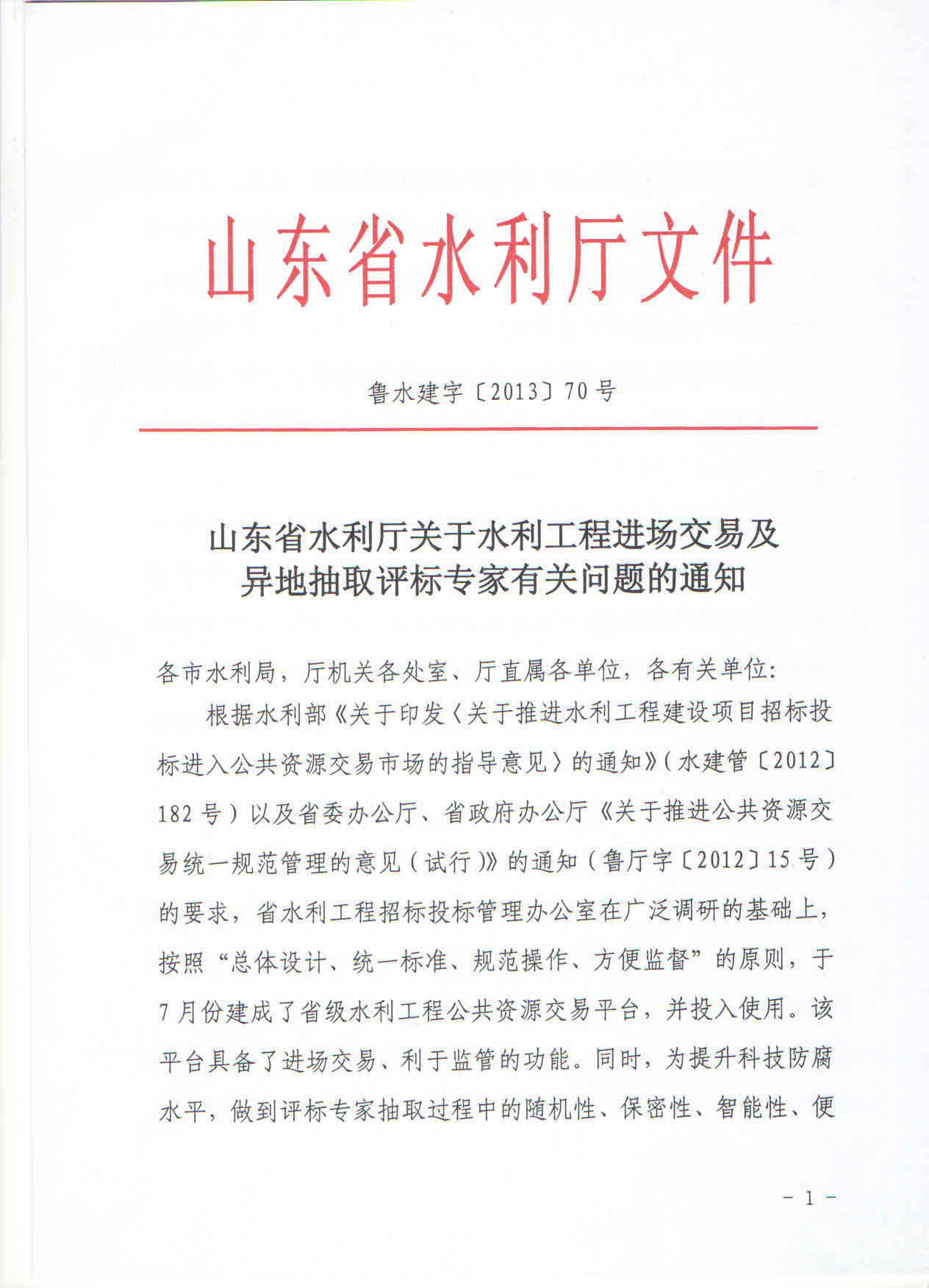 山東省水利廳關(guān)于水利工程進場交易及異地抽取評標專家有關(guān)問題的通知