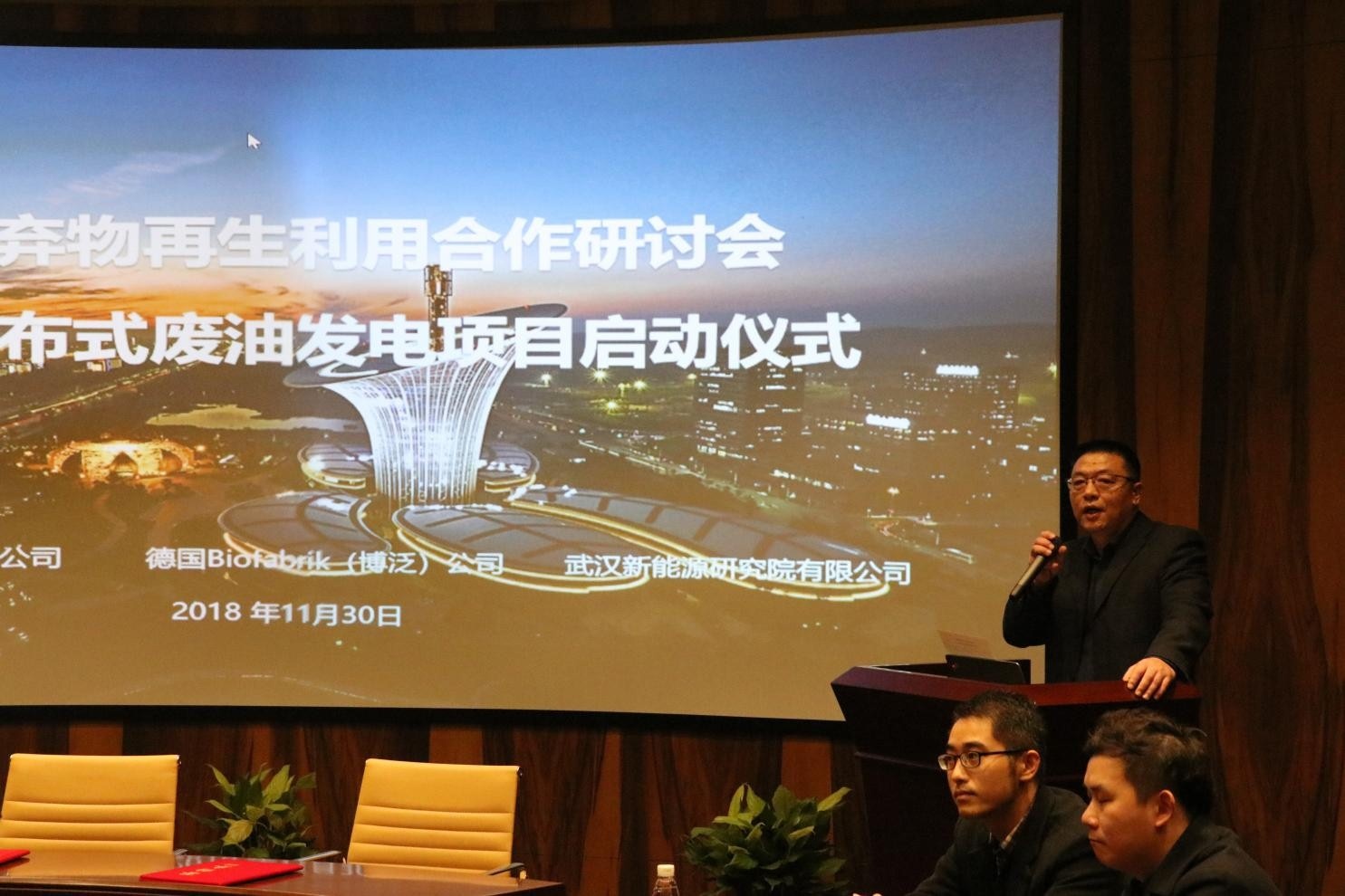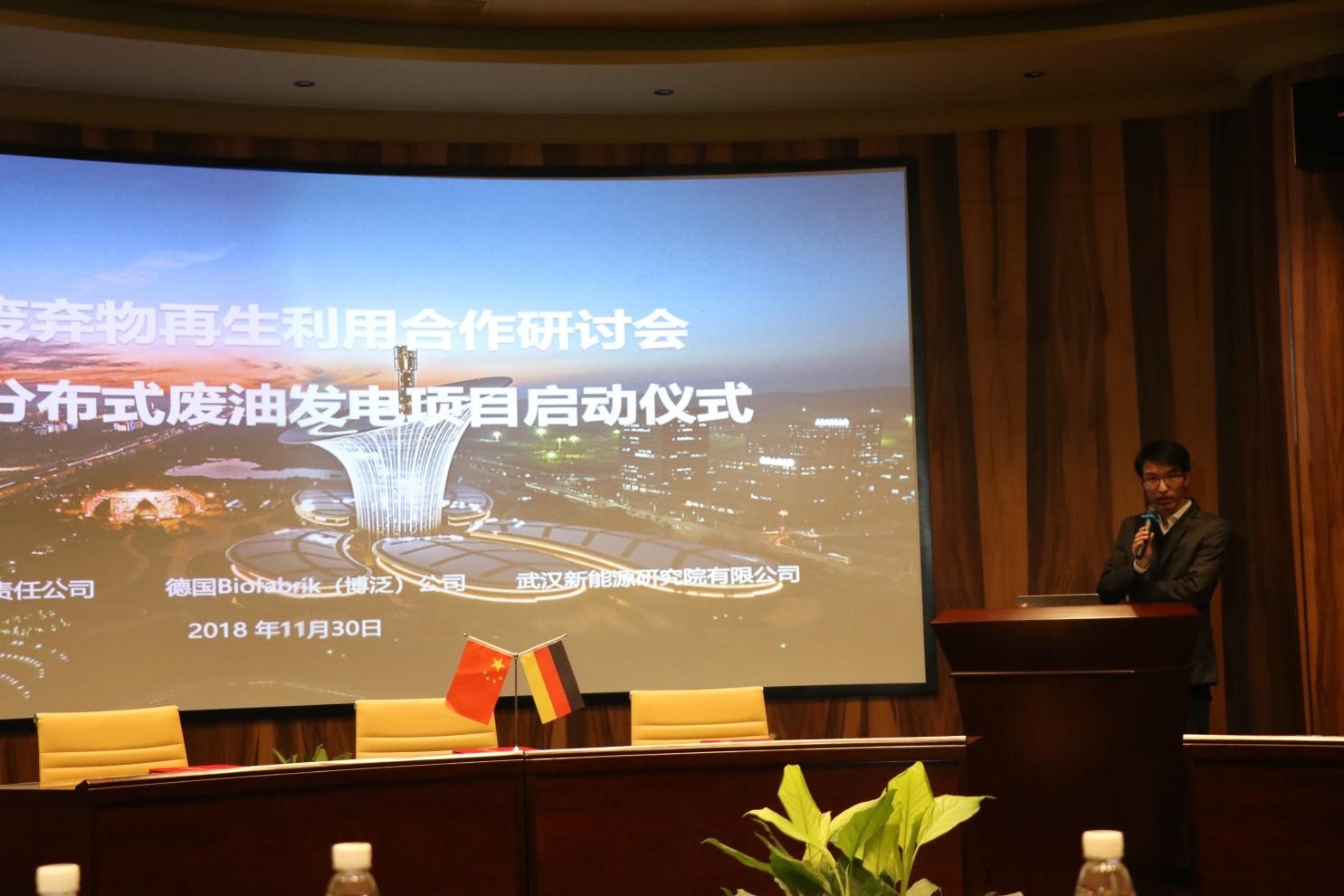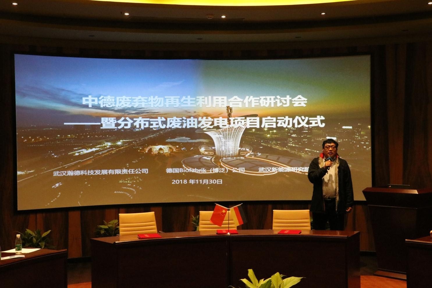 中德均為實體經(jīng)濟大國和制造業(yè)大國,均將發(fā)展新能源、環(huán)保等戰(zhàn)略性新興產(chǎn)業(yè)作為未來政府工作重點,綠色、低碳發(fā)展理念深入人心。近日,由德國Biofabrik(博泛)技術(shù)公司、武漢瀚德科技發(fā)展有限責(zé)任公司、武漢新能源研究院共同舉辦的“中德廢棄物再生利用合作研討會暨分布式廢油發(fā)電項目啟動儀式”在新能源研究院召開。