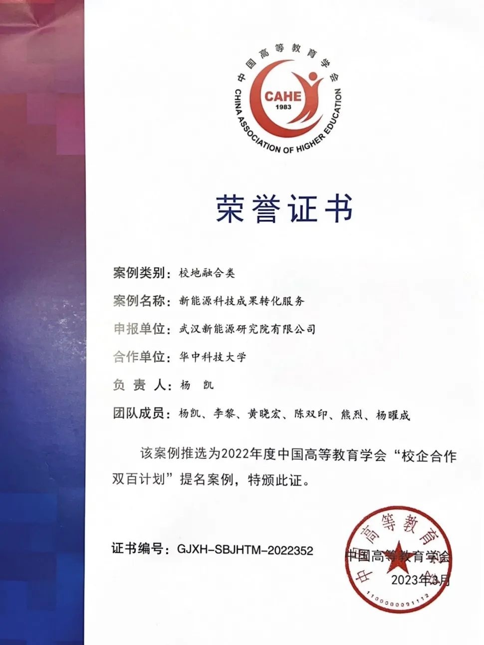 為深入推進產(chǎn)教融合、校企合作,推選2022年度中國高等教育學(xué)會“校企合作 雙百計劃”典型案例,近日,中國高等教育學(xué)會以線上相結(jié)合形式,開展“雙百計劃”第五批走訪活動。武漢新能源研究院副院長李黎參加了本次答辯會。