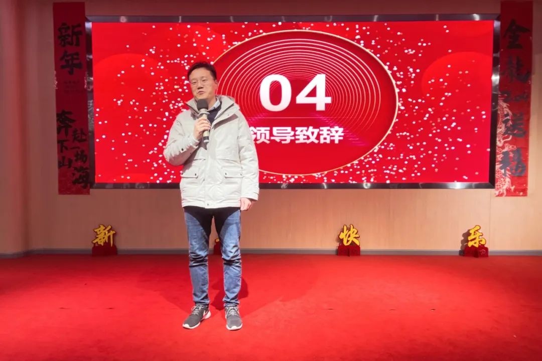武漢新能源研究院院長(zhǎng)楊凱代表院領(lǐng)導(dǎo)團(tuán)隊(duì)致辭,向各位嘉賓以及全體員工表示誠(chéng)摯的問(wèn)候和祝福,展望未來(lái),共賀新春。