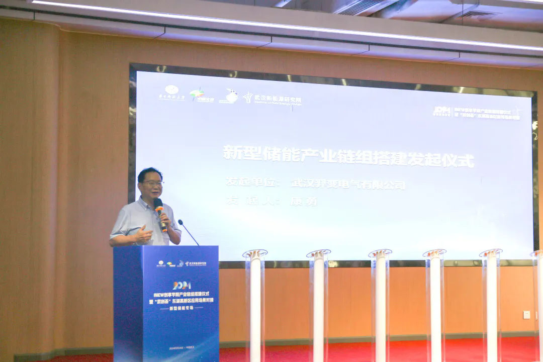 緊接著,活動(dòng)進(jìn)入了“新型儲(chǔ)能產(chǎn)業(yè)鏈組搭建倡議發(fā)起儀式”環(huán)節(jié)。在周弢等領(lǐng)導(dǎo)的共同見(jiàn)證下,華中科技大學(xué)電氣與電子工程學(xué)院教授、羿變電氣董事長(zhǎng)康勇代表鏈長(zhǎng)單位發(fā)起倡議。來(lái)自十家新型儲(chǔ)能企業(yè)的代表齊聚一堂,共同參與了武漢新能源研究院新型儲(chǔ)能產(chǎn)業(yè)鏈組的啟動(dòng)儀式。此舉旨在推動(dòng)儲(chǔ)能產(chǎn)業(yè)鏈的發(fā)展和完善,促進(jìn)企業(yè)間的合作與創(chuàng)新。