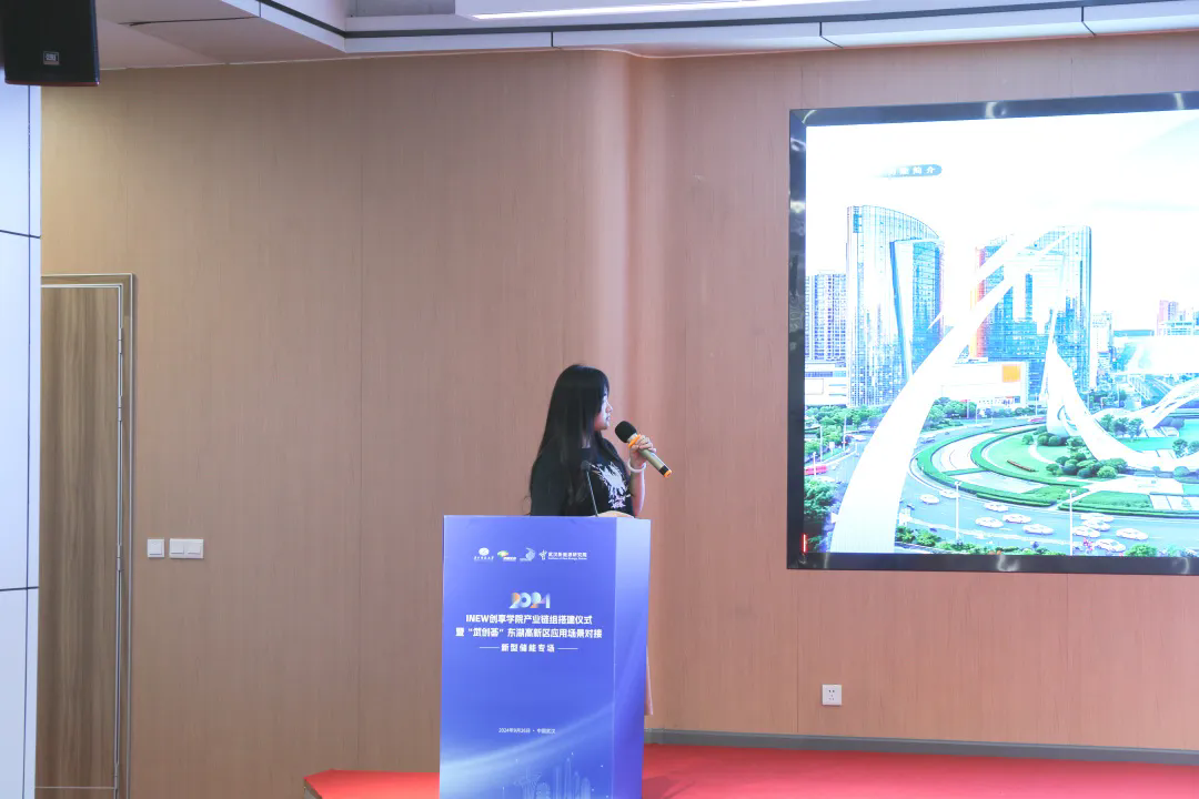 除了產(chǎn)業(yè)鏈的組建,活動(dòng)還包括“光谷科創(chuàng)金融服務(wù)平臺(tái)”的功能推介環(huán)節(jié)。中國(guó)經(jīng)濟(jì)信息社湖北經(jīng)濟(jì)研究中心的袁藝格女士詳細(xì)介紹了該平臺(tái)的功能與優(yōu)勢(shì),強(qiáng)調(diào)其為科技創(chuàng)新提供強(qiáng)有力的金融支持,推動(dòng)新型儲(chǔ)能產(chǎn)業(yè)快速發(fā)展的重要作用。她表示,平臺(tái)將通過(guò)對(duì)接優(yōu)質(zhì)項(xiàng)目與金融資源,助力企業(yè)突破資金瓶頸,提升創(chuàng)新能力。