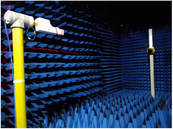 本平臺(tái)包含的微波性能測試系統(tǒng)體積為16m×7m×6m(L×W×H),微波測試凈區(qū)達(dá)到0.6m×0.6m,通過超寬帶時(shí)域測量系統(tǒng)(UWB TDMS)實(shí)現(xiàn)磁性材料吸波性能的測試分析,整個(gè)系統(tǒng)包括遠(yuǎn)場天線測量系統(tǒng)、近場天線測量系統(tǒng)等,工作頻率范圍可從幾十兆赫茲到 40GHz。